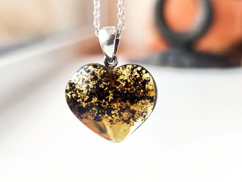 Gintarinis pakabukas širdies formosGintarinis pakabukas „Ūkanota širdis”